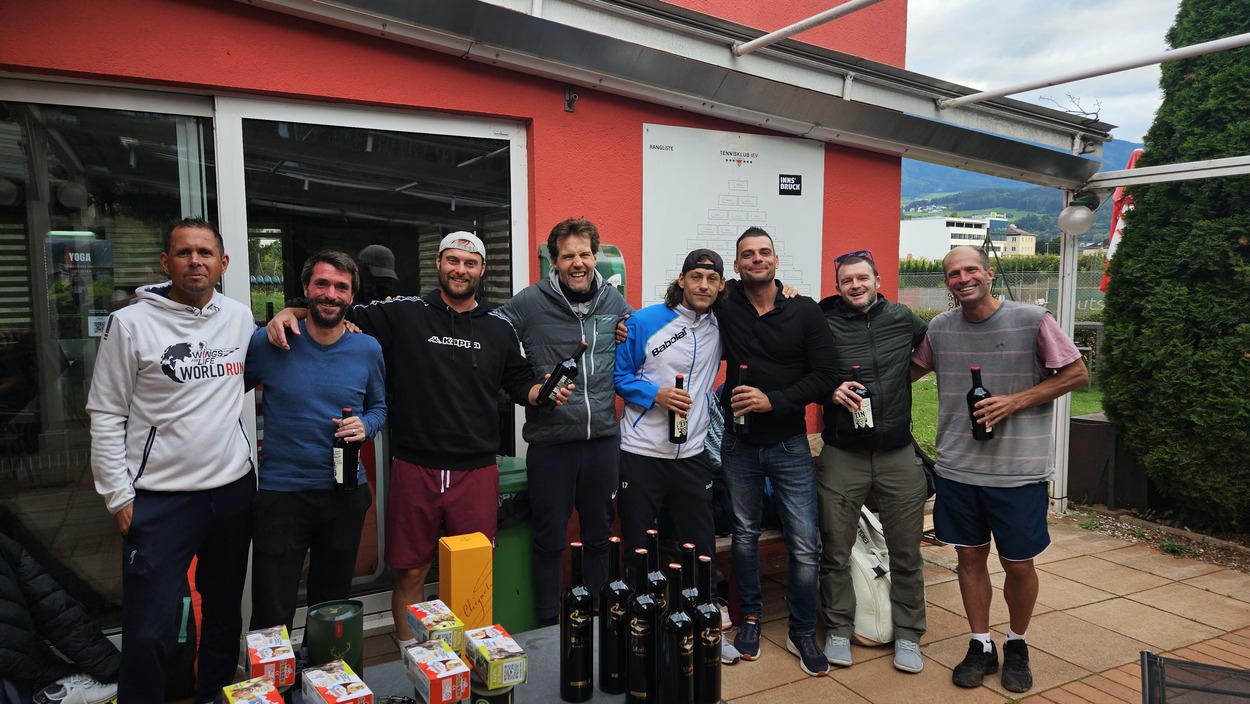 Geehrt wurden vergangenen Samstag auch die diesjährigen Meistermannschaften des IEV. Gregor Gollmayer überreichte den erfolgreichen Ü55-Herren, unseren Herren Ü35 und unserer AK 2 Mannschaft edle Weine und gratulierte nochmal allen sehr herzlich.